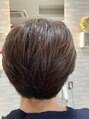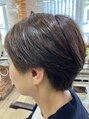 ボーイッシュなヘアスタイルがお好きな方です。前髪だけは少し長めにこだわられています。髪に優しいプレミアムカラーと6種類のトリートメントを前中間後処理で使って綺麗な髪とツヤをずっとキープされておられます。