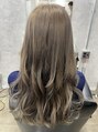 バレイヤージュ、ハイライト、レイヤーロング、グレーベージュ