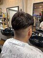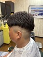 アップバングのラフなスタイル!ホットパーマでお手入れも簡単です!サイドとバックはツーブロックでお好みでフェードも出来ますよ♪