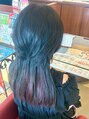 ご新規様カットカラー後ろ長めのウルフカットカラーはトップ触らずインナーカラーのみのご希望!インナーブリーチオンカラーで濃いめの赤紫!