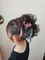 編み込みエクステの原色10本つけて、カールアップ。(なみなみ)編み込みセット。サイドにもってきて。(タカハシ)