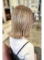 全体にメッシュブリーチを入れた髪にアッシュグレージュカラーをのせました。カットは肩下外ハネボブです。【髪質改善/ハイライト/白髪ぼかし/白髪染め/カット/ショート/カラー/リタッチ/前髪カット/元町】