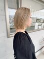 やわらかな透明感ブロンドと長めのミニボブが絶妙バランス◎オイルでタイトにまとめれば大人っぽく、毛先をワンカールで柔らかさも演出♪