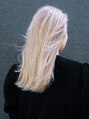 赤みを消した柔らかいホワイトミルクティーカラー☆長めバング+顔周りレイヤーで、巻いた時に簡単に動きが出るようにしました。ブリーチ必須のハイトーンカラーです。