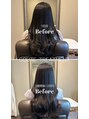 3週間後に2回目の髪質改善をさせていただきました。施術前の状態ですら手触りと毛先のまとまりがキープされていたので、before比較も。どこまでさらにキレイになるか…でしたが、さらにツヤサラ、ハリコシ、ツルンとしたまとまりに◎