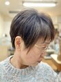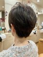 柔らかい丸みをプラス女性らしいショートに、耳周りを軽くツーブロックで仕上げてスッキリ感をプラス。トップに自然なふんわり感を出すことで、小顔に見えたり若々しい印象を演出。眼鏡との相性◎、ナチュラルな雰囲気の中に洗練された大人の印象を与えます。