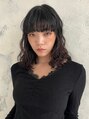 ミディアムのウェーブパーマ。重めシルエットなのに動きがあってふんわりにも見えます。ムースのみのスタイリングで簡単にセットできるのでおすすめです☆