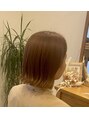 耳かけ外ハネボブ透明感のある明るめベージュカラーに合うショートボブ
