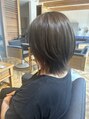 レイヤーボブのベースにイヤリングカラーを。表面のカラーは赤味を消してグレージュに、オンカラーは可愛らしいアンバーに!