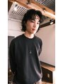 中性的なメンズボブパーマ。センター分けでメリハリあるスタイル。レイヤーを入れて段を作ってズレるようにスパイラルパーマを。