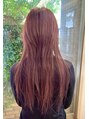 ブリーチ無しカラーです。ボンドカラー14トーンピンク、バイオレット、イルミナカラートワイライト、PYRを調合しました。