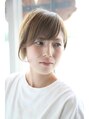 似合う長さをリップラインに選定し表面にかるくレイヤーをいれてます。ほしい箇所だけにカールを毛先に、カラーリングはプラチナベージュブラウンで艶やかに…。耳にかけてチョッピリこなれ感をだしてみても素敵です。アレンジも自由自在です。