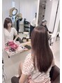 右にスワイプした2枚目がbefoe。半年前に縮毛矯正履歴。既矯正部の癖戻り修正+ツヤ化を図りました。矯正前にシリコン成分を重曹シャンプーにて落としてからPH4~6程度に薬剤を調整して1液。毛量多めなので2液はシャンプー台でOX3%を薄めて多めに塗布。