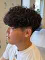 刈り上げを高めに設定し、フロントへ向かうような毛流れが特徴のスペインカールは、男らしく爽やかな印象になることがポイントです!クリーム状の薬剤を使用して髪をケアしながらパーマをすることで、外国人風のパーマスタイルに*