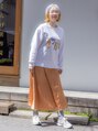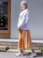 グレイヘア×ビビッドオレンジ★切りっぱなしボブ[40代50代60代]