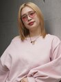 ハイトーンのブロンドカラーで抜群の透明感を。シンプルなストレートミディアムに合わせて、クールでモードな雰囲気を演出しました。アクセントを効かせたい方におすすめです。