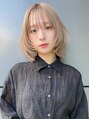 切りっぱなしボブでカットし、顔まわりは似合わせでカット、透明感が出るようにブリーチしてブロンドベージュカラー。