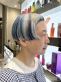 内側を刈り上げたツーセクションボブスタイルは内側の髪が多くて膨らみやすい方におすすめ!カラーリングは涼しげなネイビー&ホワイトブロンド。まるで滝の様な雰囲気で夏にぴったりです!ヘアカット、デザインカラーは是非お任せください!