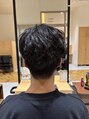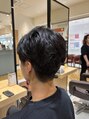 全体的にアウトラインは刈り上げてさっぱり、夏らしく。トップはくせ毛を活かして長さを残しパーマ風に仕上げました!