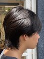 サラサラストレートヘアを活かした頭の形をよく見せる柔らか丸みのマッシュショートウルフ。ツンとして起き上がりやすい襟足をあえて長さを残すことで、まとまりやすく馴染みよくしました。スタイリングは、柔らかいワックスかバームを馴染ませるだけ。