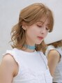 顔まわりにレイヤーで軽さを出しカラーはハイトーンのベージュで柔らかく。毛先をゆるく32ミリのコテで巻いて優しい雰囲気を出しています。