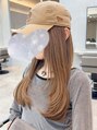 前回入れたラベンダー系のカラーをなくして少し明るくしたいとのご要望でした!中明度の明るさで伸びてきた時の根元と毛先の差がでないようにします!色味はオレンジブラウンで希望の暖色系カラーです/外ハネスタイリング/オレンジブラウン