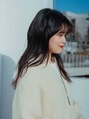 毛先ににかけてゆるいカールがかかるようナチュラルなパーマになります。バングはワイドでうすくなっており、抜け感を表現しました。毛先のナチュラルなグラデーションカラーがよりロングの単調さを消して可愛さを引き立てています。【いわき】