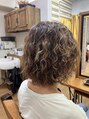ミックスパーマにハイライトを織り交ぜて動きを出しました。カラーはベージュ系でツヤ感を。