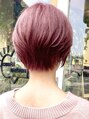 ブリーチダブルカラーでピンクカラーに染めたショートスタイル。ブリーチ剤でしっかり脱色いた後、2回目のカラーで色みを入れています。白髪染めにも対応しているので透明感のあるカラーを楽しみたい方におすすめです。