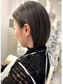 襟足ギリギリの切りっぱなしボブにグレー系のハイライトを合わせました。オシャレでお手入れ簡単なところが魅力のスタイルになります。