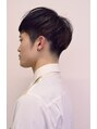 サイドからバックまでツーブロックで刈り上げ、上から丸いいフォルムのマッシュショートをかぶせたスタイル。さわやかさにプラス個性を。