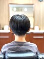 マッシュベースでサイドをツーブロック、バックを刈上げ。セニングを入れて収まりの良さと軽さを出したショートマッシュスタイル。