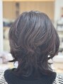 ゆるくかけたミディアムパーマスタイルです♪乾かすだけでまとまるので、お手入れがラクになります♪髪質改善トリートメントでツヤ感キープです♪