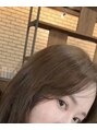 ブリーチなしのダブルカラーで、透け感と柔らかさのあるオリーブベージュに。顔周り中心にレイヤーを少し入れて、スライドカットで髪が動くように