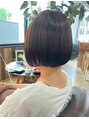 シンプルなライン感のあるボブ。シンプルな形だからこそ、丸みの位置ボリューム感にこだわってカットさせて頂きました。乾かすだけでまとまりやすく、後頭部の丸みも感じれるかと思います。インナーカラーや明るい白髪染めでスタイリングが楽しくなるボブです