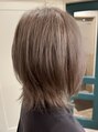 外ハネウルフレイヤー!カラーは、ブリーチしてからの、スモーキートパーズでうっすら紫ががった透明感のあるグレージュ。