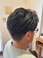サイドはツーブロックでスッキリとさせ、髪全体はオールバックで流して仕上げます。スタイリング剤はジェルワックス、スプレーなどお好みに合わせてお試しください!ハチはりさんや広がりやすい髪質の方は両サイドおさえて乾かすとキマります。