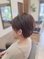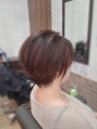 ショートレイヤーカット、トップに動きを出すために軽くしています。襟足も、軽めに首なが効果あり♪少し明るめのカラーで全体的な軽さをだしました。