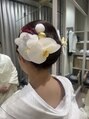短めボブさん、ネジネジアップヘアになります。髪飾りでより華やかに!!