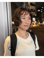 - ショートボブにカットして、癖毛を活かしてウェーブのスタイリングにしました。