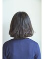 アゴラインのボブスタイルでゆるめのパーマによる大人の女性にオススメしたいスタイルです。パーマは毛先中心にかけているため強すぎず柔らかさを重視しています。