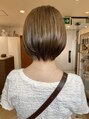 顎下レングスのショートボブスタイル頭の丸みが綺麗に見えるようにカットし女性らしさを作ります後から見ても丸く柔らかい印象に