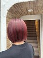 レッドピンク 赤髪 切りっぱなしボブ 前回のハイライト部分の発色がかわいい仕上がりになりました
