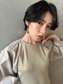 前下がりのセンターパートスタイル。前髪は少し長めに残してニュアンスパーマで毛流れを作ることで、ショートでも女性らしさの残るヘアスタイルに。ドライして、バームやオイルをつけるだけなので毎朝のスタイリングも簡単です。