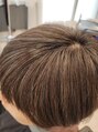 白髪が分け目付近が多くなってきたので、ハイライトをいれることで馴染んでめだちにくくなっています。また、襟足はギリギリ刈り上げないくらいのショート。丸みを出すことでボーイッシュすぎないようにしました!
