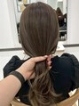 ミルクティー/インナーカラー/イヤリングカラー/ハイライト/ダブルカラー/ブリーチ/前髪カット/髪質改善トリートメント/ブリーチカラー/髪質改善/学割U24/グレージュ/ベージ/ブリーチなしダブルカラー/韓国/レイヤーカット/大阪/京橋