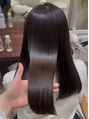 ツヤ感たっぷりのラベンダーブラウンカラーになります!ラベンダー系のカラーはお肌もワントーン明るく見えるのでおすすめのカラーになります!暗めでも透明感あるカラーができるので、お仕事で規定がある方でも挑戦しやすいカラーになっています!