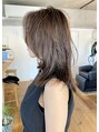 【気に入ったスタイルはブックマークをしていただくと便利です】カットはセミロングレングスのレイヤースタイル。顔周りとミドルセクション上からレイヤー入れてラフな動きと大人っぽさを♪髪色はブリーチ無しの透明感グレージュカラー[薬院/警固][レイヤー]