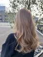 顔まわりに繊細な束感を作るシースルーバングと、全体にラフなゆるウェーブをかけることで、抜け感と女性らしさを両立。ナチュラルでも動きのあるスタイルで、スタイリングも簡単です。