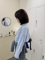 赤み消しオリーブベージュ。光に当たった時に赤みのないベージュになるように、オリーブ系にアッシュを少し混ぜて、しっかり赤みを飛ばしています。緑を入れすぎると顔がくすんでしまうので、配合をしっかり計算しています。